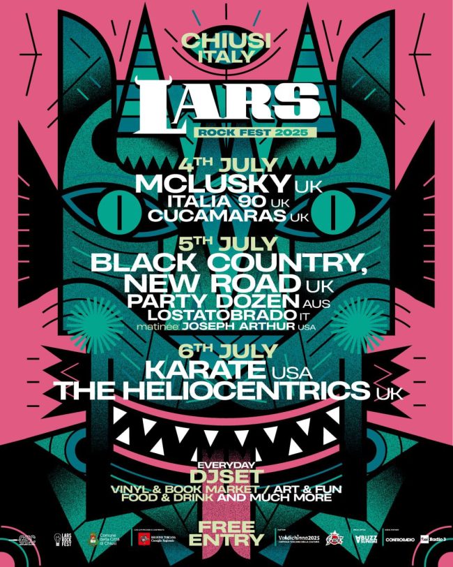 LoStatoBrado aprono per Black Country New Road al Lars Rock Fest grazie alla partnership con il Rock Contest. Presentato il programma completo della tre giorni di concerti ed eventi da venerdì 3 a domenica 6 luglio nei Giardini Pubblici di Chiusi con ingresso gratuito. Dal 4 al 6 luglio 2025 presso i Giardini Pubblici, torna a Chiusi,