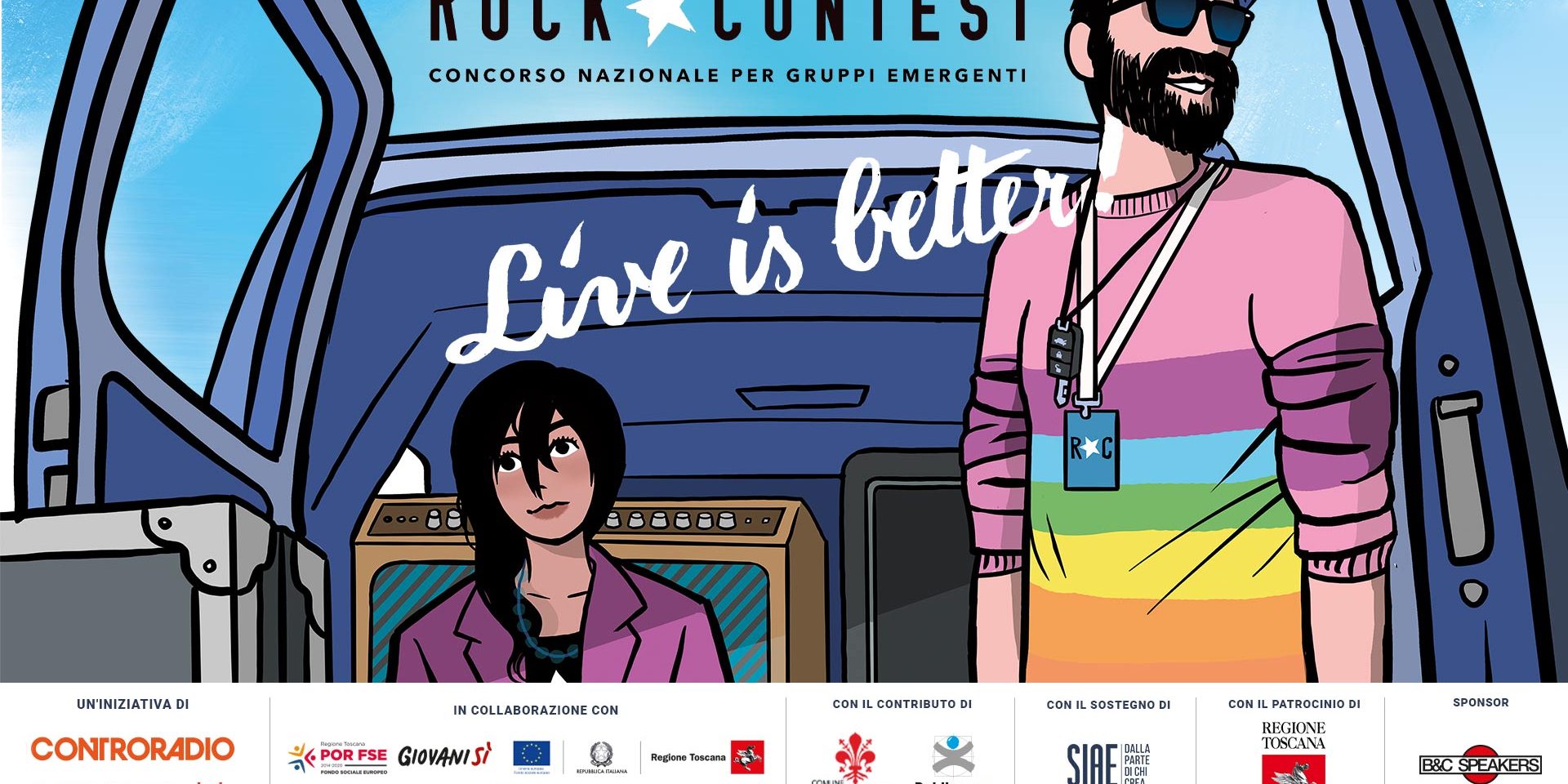 Rock Contest è organizzato da Controradio e Controradio Club in collaborazione con Regione Toscana – Giovanisì/Fondo Sociale Europeo, Fondazione Sistema Toscana, il contributo di Comune di Firenze e Publiacqua, il sostegno di SIAE – Società Italiana degli Autori ed Editori, il patrocinio di Regione Toscana, sponsor B&C Speaker.